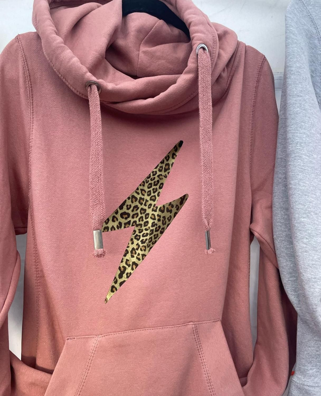 Lightning Bolt (Leopard) Cross Neck Hoodie | Tambas Prints