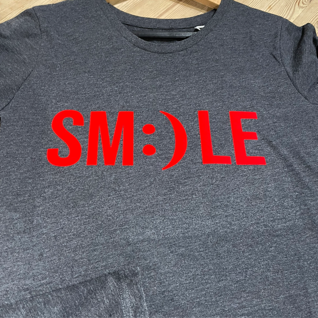 T-shirt | Dark Grey Rolled Sleeves With Red Smile | Tambas Prints